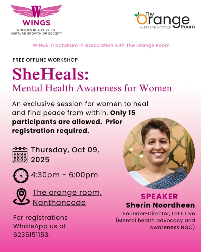 #SheHeals #TheOrangeRoom #LetsLive #WomensMentalHealth #SelfCareCircle #HealingTogether #MentalHealthAwareness #trivandrumevents