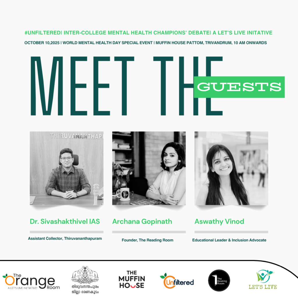 #WorldMentalHealthDay #LetsLive #UnfilteredProject #TheOrangeRoom #YouthForMentalHealth #TrivandrumEvents #CollegeLife #DebateDay #MentalHealthAwareness #TakeCareOfYourMind