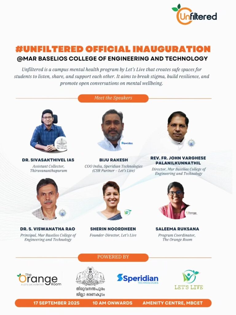 We are delighted to announce the inauguration of Unfiltered – our flagship campus mental health program – at Mar Baselios College of Engineering and Technology, Trivandrum.